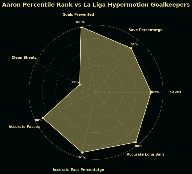 These numbers also help contextualize FC Andorra’s defensive reality. The team allows a high volume of shots per game, often forcing Yaakobishvili into constant action. In such conditions, keeping clean sheets becomes extremely difficult, as even a single lapse or deflection can undo an otherwise strong performance. However, rather than being overwhelmed, Aaron has consistently risen to the challenge, maintaining a high save count and frequently bailing his team out in critical moments.