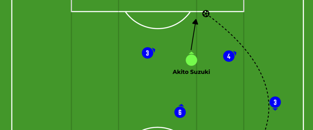 The second defining trait of his game is his movement in behind the defensive line. Few things unsettle defenses more than a striker who is constantly threatening the space at their backs, and Suzuki excels in this aspect. He shows excellent timing and spatial awareness, often positioning himself just outside the defenders’ focus before accelerating into space. These runs frequently place him in dangerous finishing zones, where he can either create clear chances for teammates or convert opportunities himself.
